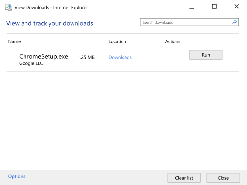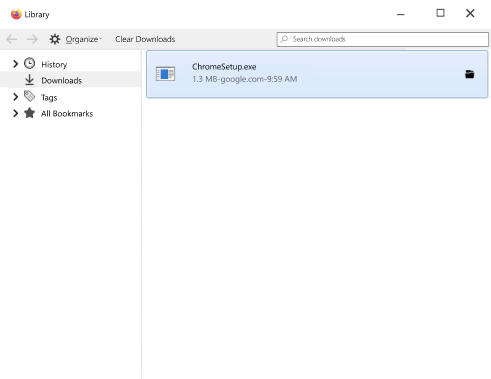 Open the ChromeSetup.exe file from the downloads list at the top right corner of this window.