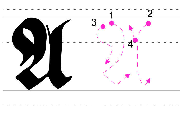 Frakturschrift großes A auf Raster mit Linienfolge - FarbCafe